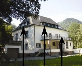 approx. 128 m² on the third floor and top floor, blue-coloured on the plan below, with additional big balcony, accessible from the second floor,